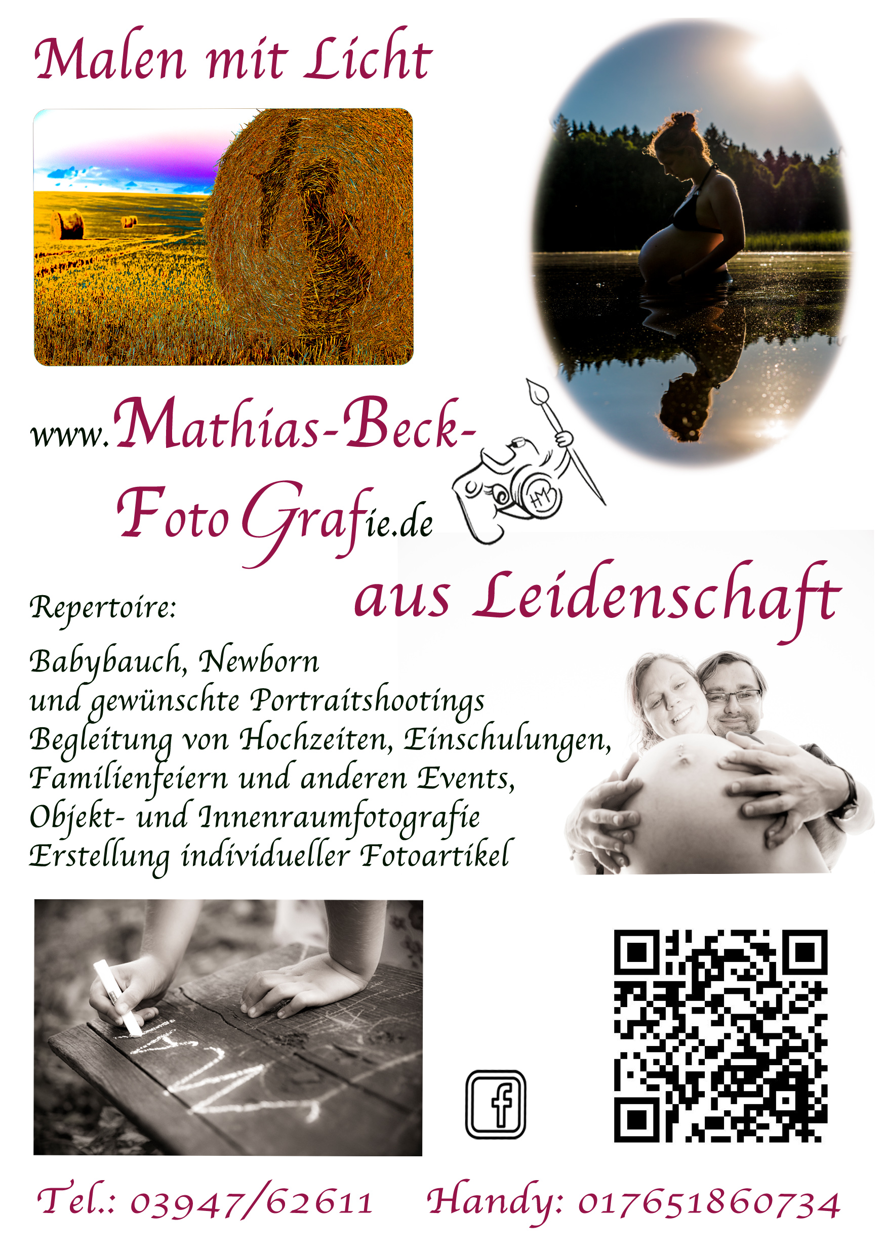 Repertoire: Babybauch, Newborn , Portraishootings, Begleitung von Hochzeiten, Einschulungen und anderen Events, Objekt –und Innenraumfotografie, Erstellung individueller Fotoartikel